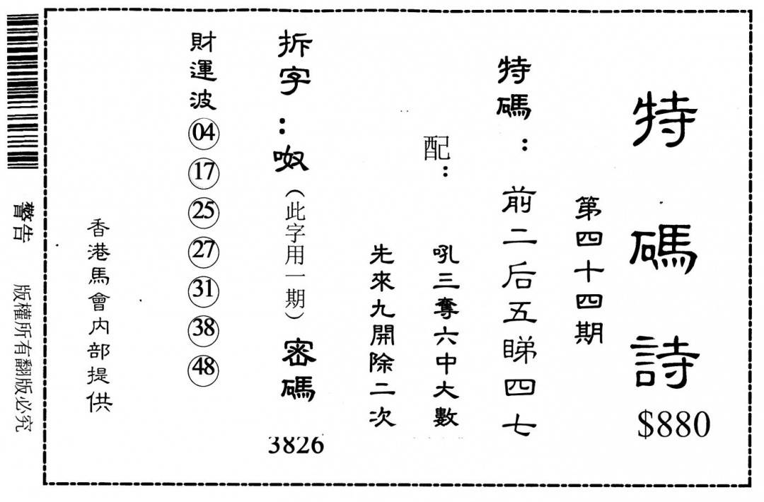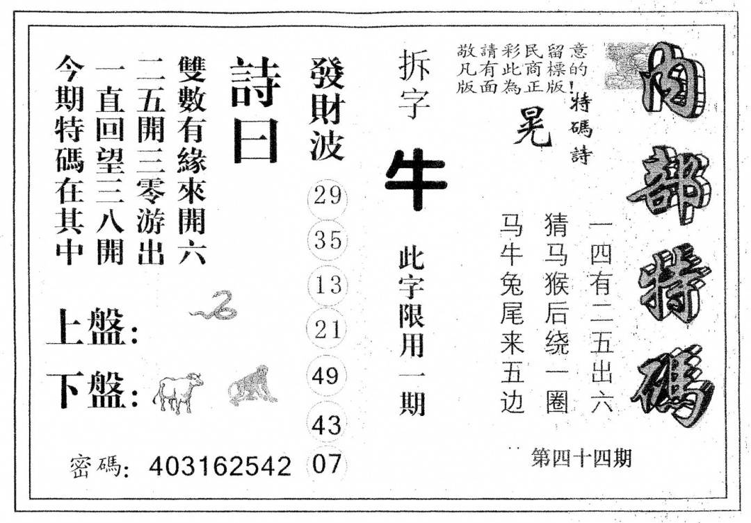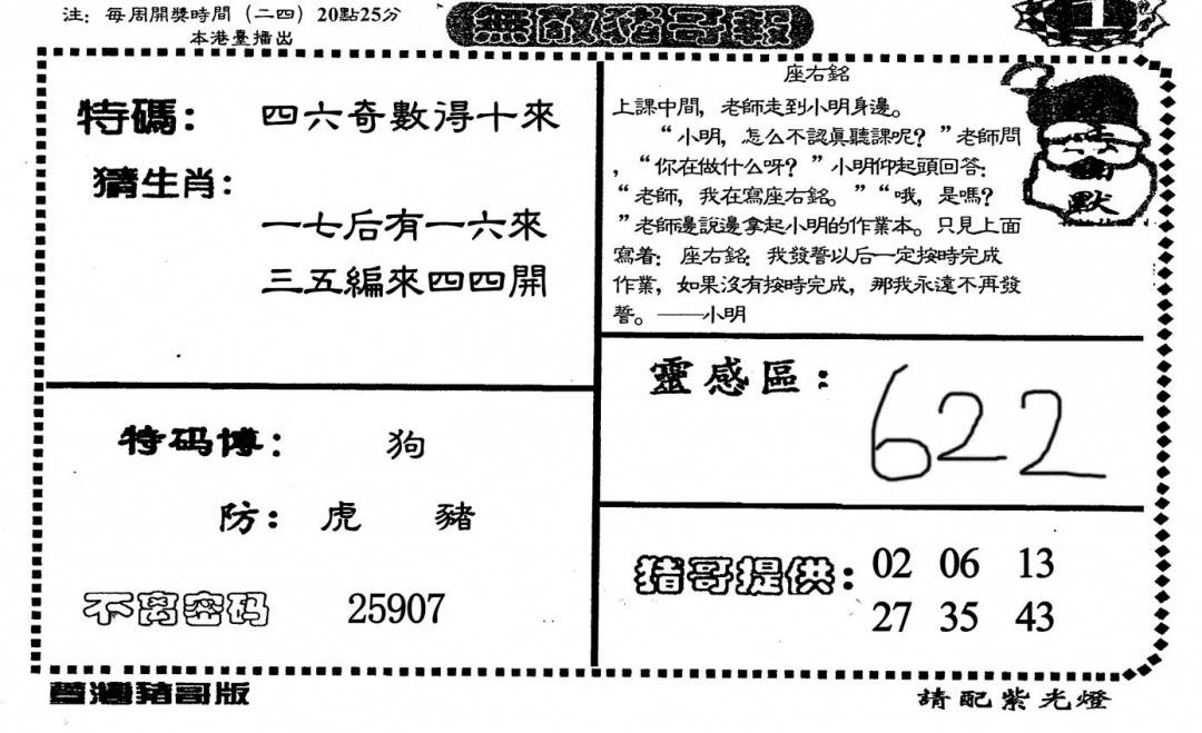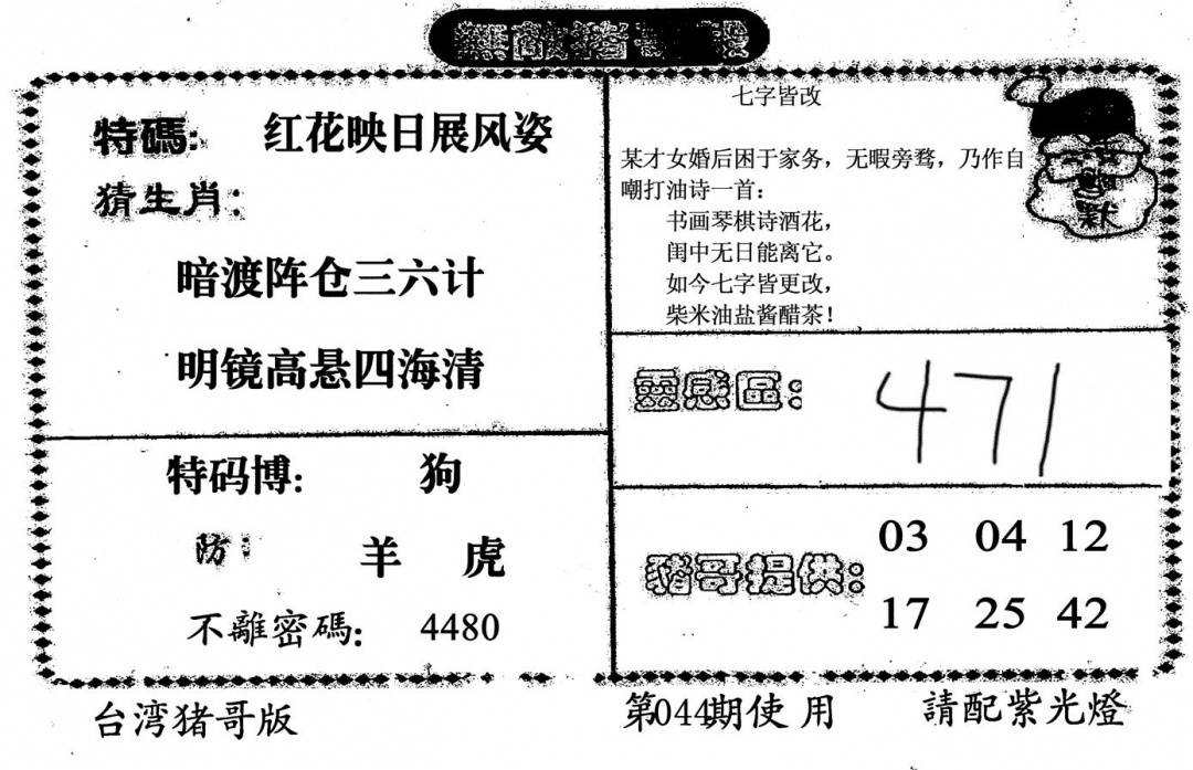 另版心水特码(早图)