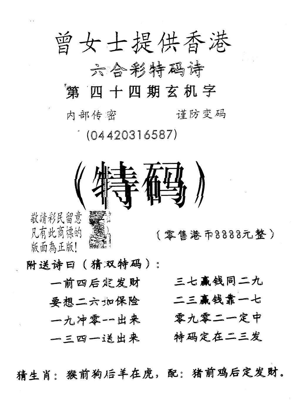 曾道人权威消息A