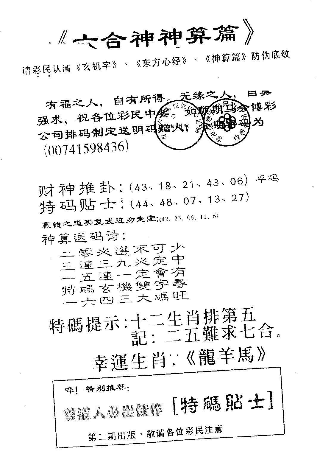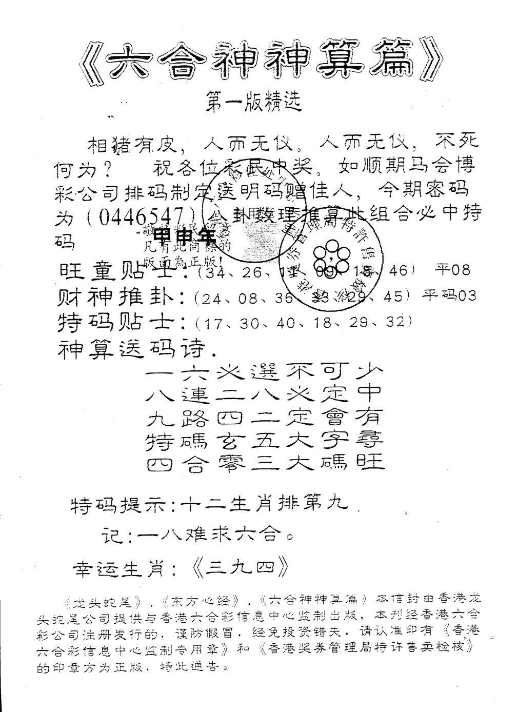 六合神算篇B