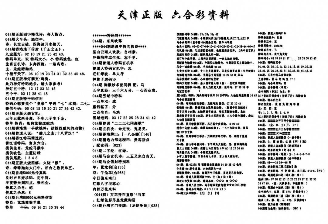 天津正版六合彩资料
